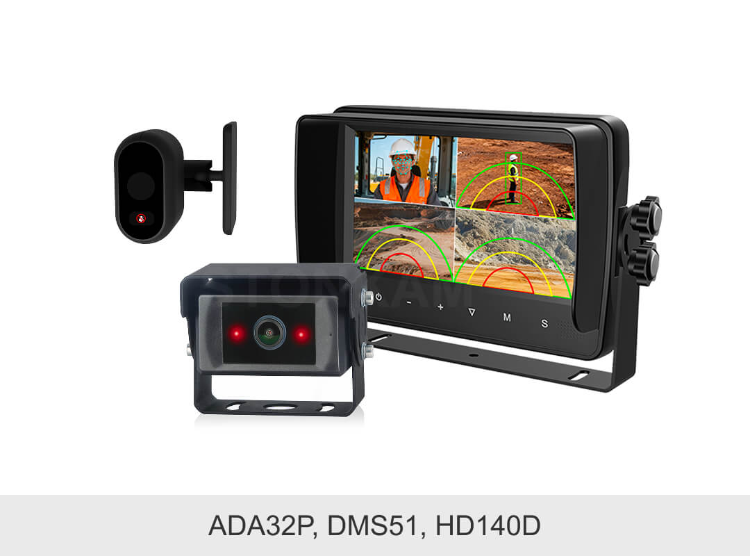 敏视AI智能工程车辆盲区预警&行人/车辆检测系统,AI盲区监测摄像头实时检测 车辆前方、侧方与后方的行人车辆,可搭配DMS驾驶员行为监控摄像头同步检测驾驶员的疲劳、分心、打电话等不规范驾驶行为。当检测到潜在风险时,系统会及时发出声光警示,提醒驾驶员采取安全措施,实现车内外全面保障行车安全。