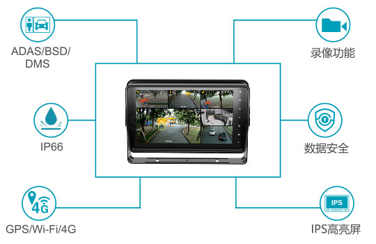 敏视10.1寸6路行人&车辆检测预警智能车载录像监控显示器解决方案