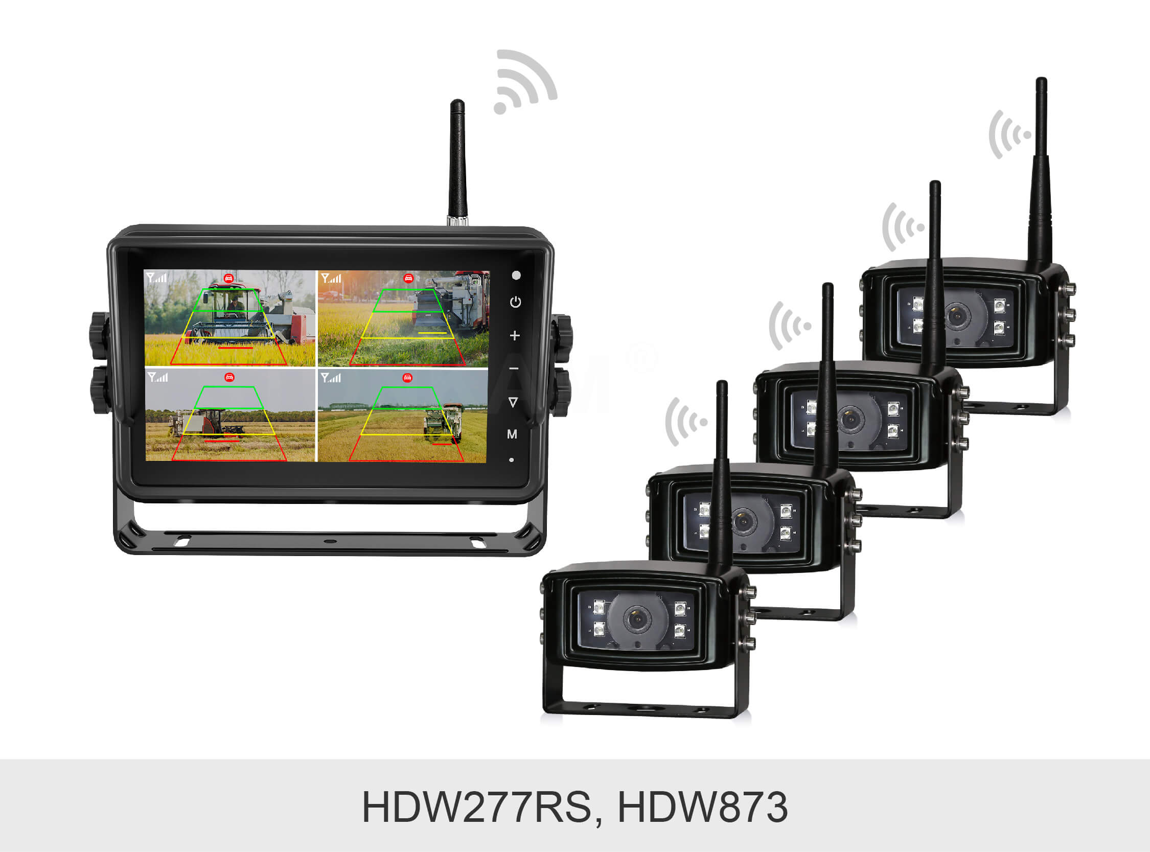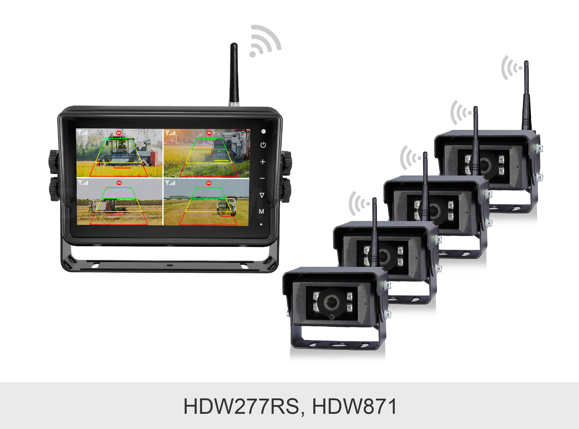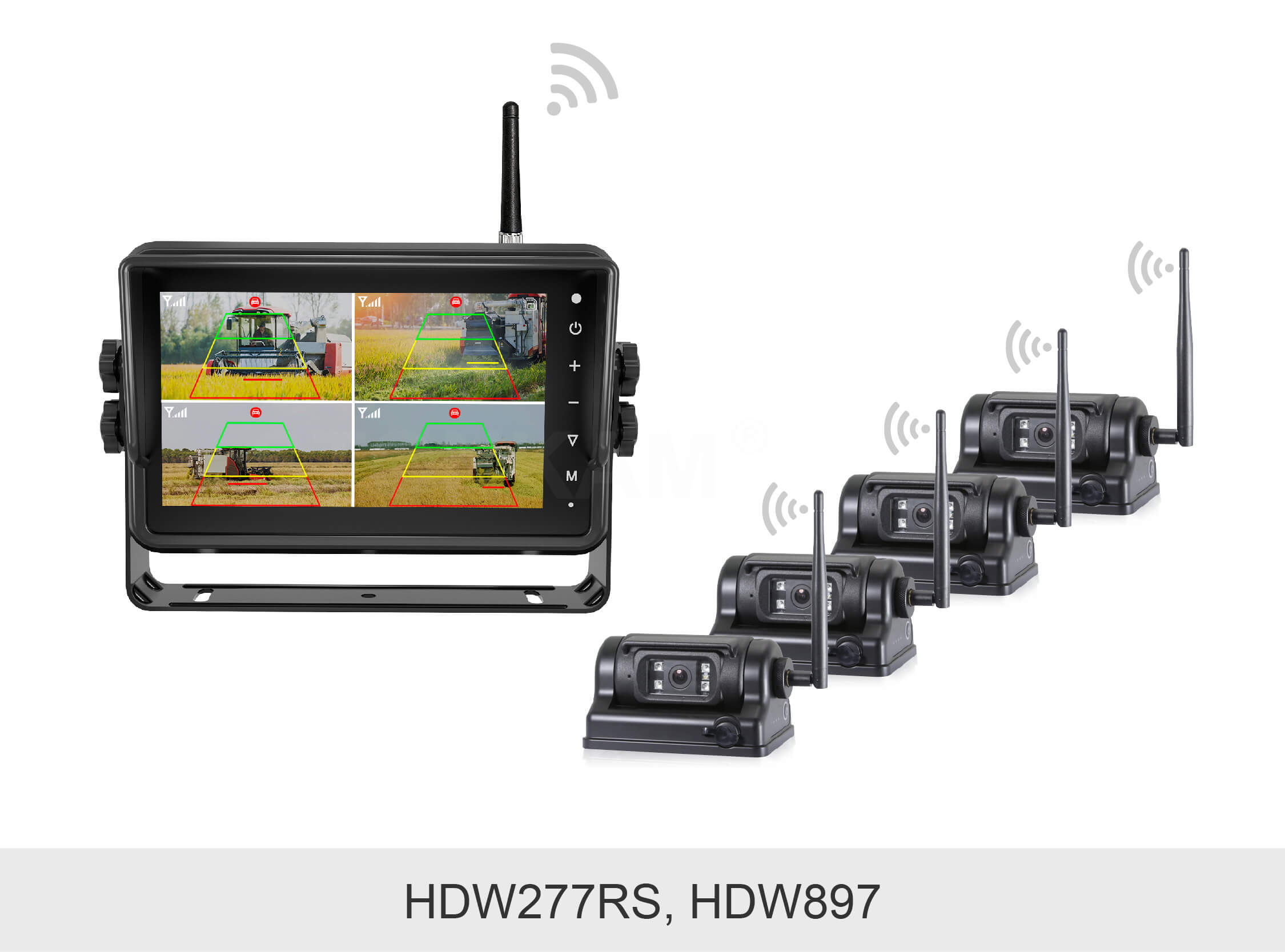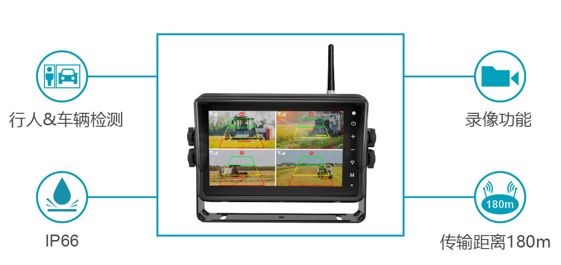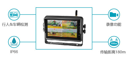 敏视7寸带智能算法无线车载录像监控显示器集无线传输技术、AI行人&车辆侦测算法和录像功能于一体,安装方便的同时支持实时检测车辆周围的行人和车辆,及时提醒驾驶员注意潜在风险并避免碰撞,助力行车安全!显示器具有防水外壳,配备录像和触屏功能;空旷传输距离最远达180m,信号稳定抗干扰,适用于卡车,叉车,矿车等各种车辆。