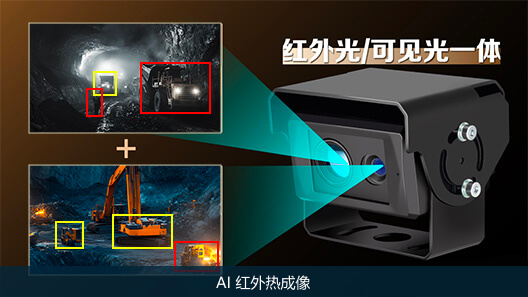 铲斗位置搭载上下摄像头,AI实时识别人车,智能切换摄像头视角避开铲斗盲区。此外控车功能基于智能识别算法与场景规则,分级输出报警信号,联动车辆控制系统实现提示或干预操作(如减速),从而提高作业安全性。